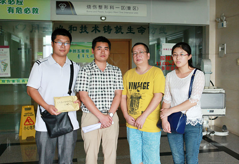 2014年6月3日晚,一件不幸的事情降臨在江西上猶縣社溪鎮(zhèn)大安村人李明亮和郭德蘭夫婦身上。他們在廣州租住的出租屋內(nèi)遭遇煤氣泄漏爆炸被嚴(yán)重?zé)齻壳罢趶V州市海珠區(qū)同福中路的廣州市紅十字會醫(yī)院進(jìn)行搶救。經(jīng)醫(yī)院鑒定李明亮燒傷面積達(dá)96%,郭德蘭燒傷面積達(dá)50%,均未脫離生命危險。病情十分嚴(yán)重需要長期住院治療,治療費用預(yù)計高達(dá)100多萬元。該家庭無法承受如此巨大的費用。李明亮家人通過各種渠道向社會募捐,希望得到愛心人士的幫助。
